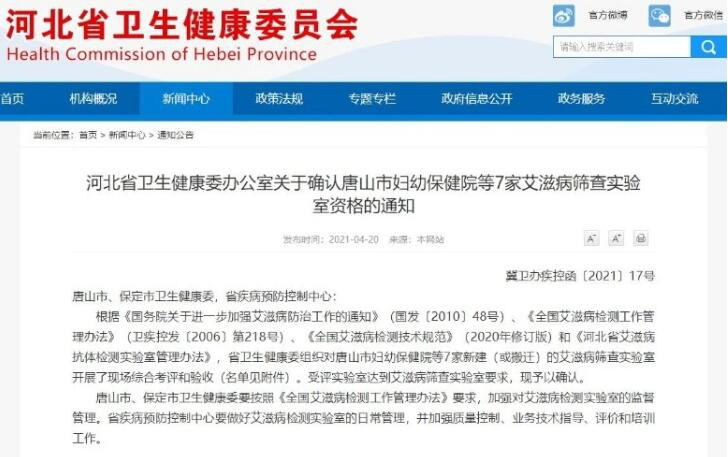 河北确认唐山市妇幼保健院等7家艾滋病筛查实验室…