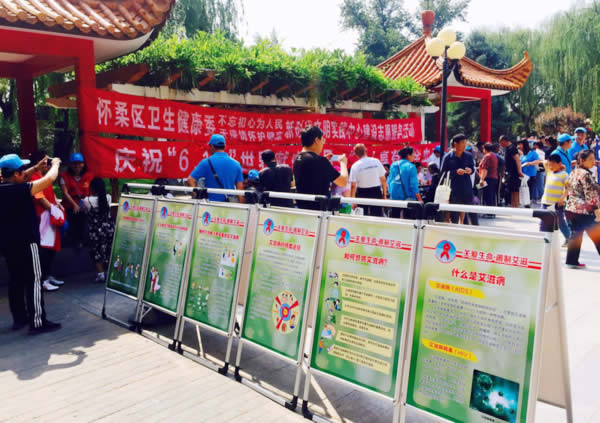 怀柔区疾控中心在万米公园开展了预防艾滋病知识…
