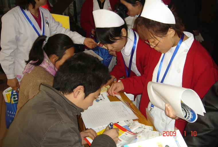 普仁医院医师在填写志愿者报名表