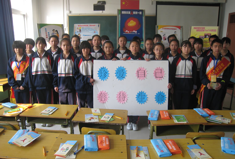 海淀67中学“防艾”橱窗宣传