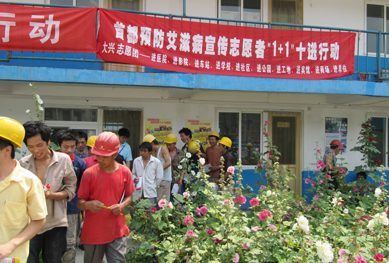 海淀 防艾宣传--工地放电影200人观看