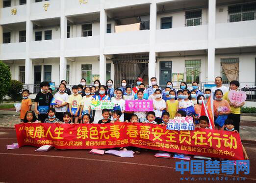 福建莆田:禁毒宣传走进白塘镇前小学活动中,禁毒办工作人员通过播放禁毒宣传公益歌曲、摆放仿真毒品模型、发放禁毒宣传册等形式,向学生们介绍…
