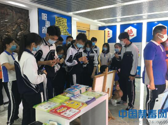 活动中,禁毒教育基地讲解员通过播放禁毒宣传视频、发放禁毒宣传单张、展示仿真毒品模型的方式,向同学们介绍毒品种类、危害及禁毒相关法律政策。
