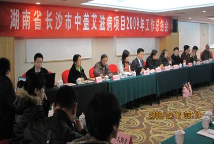 湖南省长沙市中盖艾滋病项目自2009年7月正式启动执行以来,在项目办的组织协调下,各项目实施机构齐心合力,积极开展了项目工作。为总结成绩,分析问题,确保2010年项目工作顺利开展,省市联合项目办于2009年12月16日–17日在长沙市南方明珠宾馆召开了项目总结会议。会议邀请了盖茨基金会北京代表处项目关于戴闽、国家项目办主管鲍宇刚、项目官员厉成梅以及中华预防医学会外联部主任王芃参加了会议,来自长沙市及所辖各区(市、县)疾病预防控制中心及长沙市第一医院、友爱之家、中大阳光、左岸彩虹、康达戒毒中心等项目实施机构的40多名会议代表参加了会议。