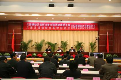 启动会由兵团副秘书长刘建波主持,兵团防治艾滋病工作委员会主任宋建业副司令员到会并作了重要讲话,兵团防治艾滋病工作委员会办公室主任、兵团卫生局副局长朱东兵同志报告了示范区筹备工作,兵团防治艾滋病工作委员会副主任、兵团卫生局局长王国建与各示范区行政领导签订了示范区目标管理责任书。
