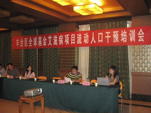 为了更好地开展丰台区流动人口艾滋病综合干预工作,推进全球基金艾滋病项目在社区的开展,提高社区工作人员的高危人群现场干预工作能力。丰台区防治艾滋病工作委员会于2010年8月13日在北京白鹭园培训中心召开了丰台区全球基金艾滋病项目流动人口干预工作培训会。参会人员有:右安门街道、大红门街道、南苑街道、南苑乡政府、西罗园街道、卢沟桥街道、卢沟桥乡政府、丰台街道、东铁营街道、新村街道办事处的文教卫生科科长及所辖社区卫生服务中心保健科科长。此次培训邀请了北京市疾病预防控制中心性病艾滋病防治所李桂英老师主讲。李老师详细介绍了高危人群现场干预工作的内容、流程、工作技巧及经验。培训增强了街道及社区卫生服务中心相关工作人员的艾滋病知识以及具体干预技巧,为下一步项目方案的实施奠定了良好基础。