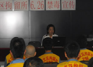 片)性艾所两名工作人员到崇文区拘留所对狱警和在押人员开展了艾滋病知识培训。