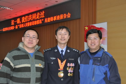 北京市公安局强制治疗管理处基础工作处社区指导科民警肖建锋是北京市公安局评选的第一届“首都人民警察道德模范”。报告首先播放了肖建锋同志参加北京市公安局第一届“首都人民警察道德模范”颁奖典礼的实况录像。随后,肖建锋同志身边同事、亲人及帮助对象,依次从不同的角度、不同的侧面讲述了他们心目中的肖建锋,展现了更加立体和生动的道德模范形象。报告既催人泪下,又催人奋进,现场观众一次又一次将发自内心的掌声送给他们。