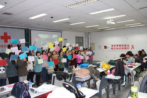 在佑安医院党委、团委的大力支持下,北京佑安爱心家园开展了形式多样,内容丰富多彩的校园行活动。参与活动的学校有北京舞蹈学院、中国人民大学、北京大学公共卫生学院、首都师范大学、中国农业大学、首都医科大学、北京交通运输学院、北京建筑大学等8所高校。受众人数达到2000余人。