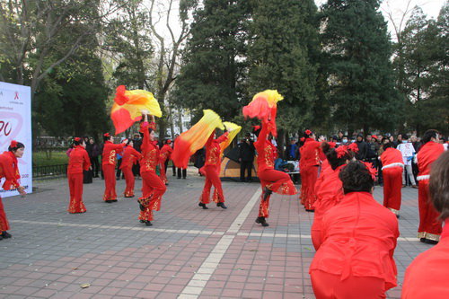北京佑安医院、北京佑安爱心家园、北京市卫生计生委、美国艾滋病健康基金会、中国性病艾滋病防治协会分别在北京三里屯广场、东单公园、牡丹园、目的地酒吧共同举办了“世界艾滋病日主题大型广场知识宣传及检测”活动。著名歌手蔡国庆主持。在活动开始前很多天,有关活动的介绍已经在爱心家园官方微信公众号、微博等渠道展开了宣传攻势。北京佑安医院还将快速检测车开到活动现场,防艾宣传员濮存昕第一个走上检测车现场检测,旨在践行“早检测 早治疗 关爱健康”活动主题,倡导大家树立控制艾滋病流行、减低艾滋病病死率关键环节这一理念。 “大妈级”舞蹈队火辣的舞蹈表演把气氛推向高潮,热情洋溢的氛围始终贯穿全场,众多市民踊跃参与,现场的歌舞表演、快检、有奖问答,游戏等环节都气氛热烈。在寒冷与大风的恶劣环境中,却能感到春的生机。北京佑安爱心家园编写的防艾知识宣传册发到参加活动的市民手中,共发放1000余册。活动中还发放了300份防艾知识调查问卷,并有效收回。目的地酒吧四楼当天设有两个检测室,快速艾滋检测工作也在同时进行。活动主会场和分会场参与现场快速检测共计百余人。
