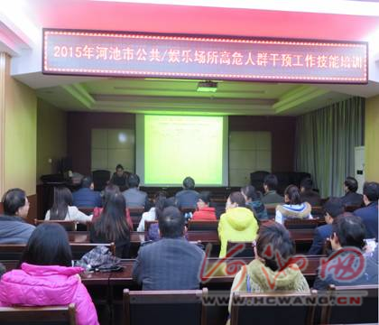 为全面落实艾滋病高危人群的干预措施,提高公众预防艾滋病性病知识知晓率,促进高危人群“自重、自省、自觉”抵制艾滋病的危险行为,倡导文明健康的生活方式,有效遏制艾滋性病在全市快速蔓延的势头,保障人民群众身心健康。2015年3月10日河池市疾病病预防控制中心举办了一期公共娱乐场所高危人群干预工作技能培训班。此次培训意在加大对工作人员的能力建设,提高工作人员现场宣传干预的工作方法和沟通技巧,共42名宣传干预骨干队员参加。