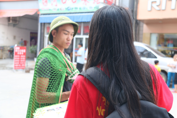 随即,志愿者走向街头巷尾发放宣传单,向广大市民、越南商贩宣讲禁毒防艾知识,将宣传力度扩展至境外。