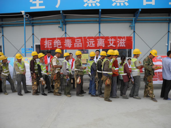 为有效开展艾滋病防治及毒品知识宣传工作,进一步扩大宣传检测覆盖面, 6月8日,区疾控中心联合区建委在辖区建筑工地开展了“拒绝毒品,远离艾滋”主题宣传活动。工地现场管理人员及建筑工人共计500余人参加活动。