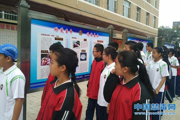 图为学生参观禁毒展板。中国禁毒网 发