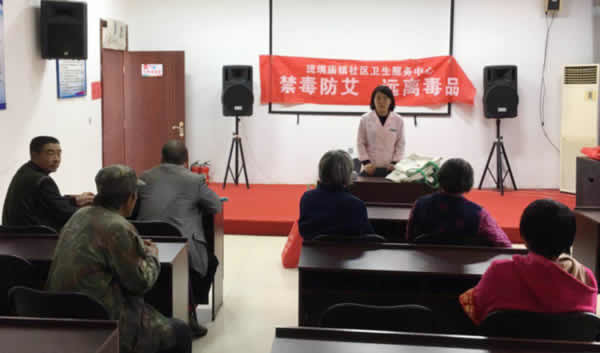 2017年10月25日上午,怀柔区琉璃庙镇社区卫生服务中心艾滋病防制工作人员来到双文铺村,对村民开展了一场以“禁毒防艾,远离艾滋”为主题的讲座,旨在提高辖区村民远离毒品,预防艾滋病知识水平。