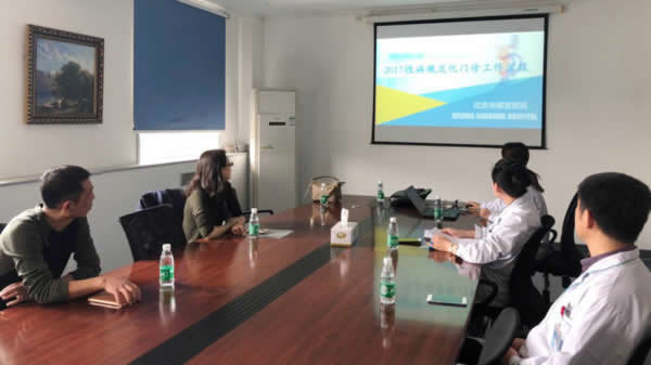 性艾科工作人员首先听取了健宫医院17年工作的整体汇报和18年的工作计划;随后重点就辖区内其他医疗机构转诊的梅毒病人就诊的后续情况进行了解,并对梅毒规范治疗的处方进行了抽查;最后对门诊的环境、人员及诊疗设备、药物使用等情况进行了现场查看。