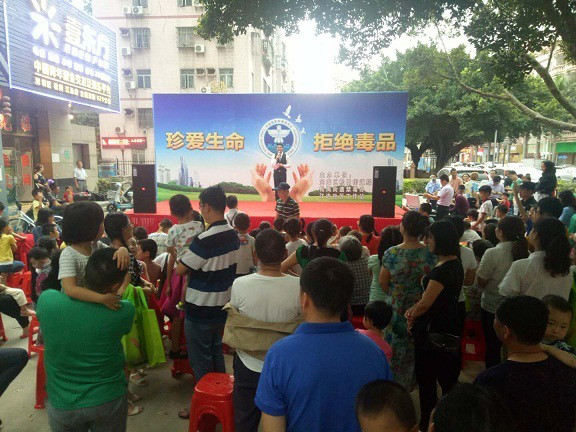 活动通过现场摆放的禁毒宣传展板与文艺舞蹈、独唱、小品等群众喜闻乐见的形式进行禁毒宣传,活动吸引了许多居民驻足观看晚会。禁毒社工还向社区居民发放禁毒宣传手册及为居民讲解毒品的种类、危害及防范知识,让社区居民了解更多的禁毒知识。当天共发放《禁毒知识手册》、《毒品危害案例》《新型毒品预防手册》等禁毒宣传资料300份,现场200余人参加了活动。本次活动中,文艺演出活动还穿插了禁毒知识有奖抢答,吸引众多群众踊跃参与,营造了寓娱乐性、知识性、教育性于一体的良好氛围,使观众在观看节目的同时,进一步加深了对毒品危害人类身体健康的认识。