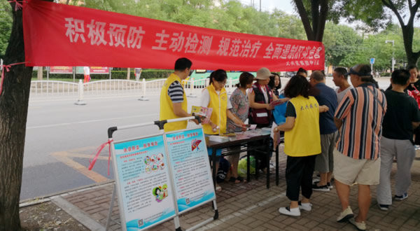 2018年7月28日是第八个 “世界肝炎日”,宣传主题为“积极预防,主动检测,规范治疗,全面遏制肝炎危害”。为广泛宣传肝炎防治知识,切实做好大兴区病毒性肝炎防控工作,7月25日上午,大兴区疾病预防控制中心在车站南里社区居委会开展现场宣传咨询活动。