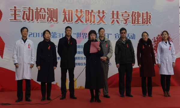 2018年11月30日下午,在第31个世界艾滋病日即将来临之际,朝阳区卫计委、东风地区办事处、朝阳区疾病预防控制中心和朝阳区东风社区卫生服务中共同举办了“主动检测 知艾防艾 共享健康”主题宣传活动。中华预防医学会秘书长杨维中、北京市疾病预防控制中心性病艾滋病防治所副所长辛若雷、朝阳区卫计委工会主席刘政华、东风地区办事处副乡长秦亮、朝阳区疾病预防控制中心主任赵伟、副主任魏云芳、东风社区卫生服务中心主任苗杰、书记杜华等领导出席了活动,社区居民和红丝带志愿者等共计200余人参与了宣传活动。