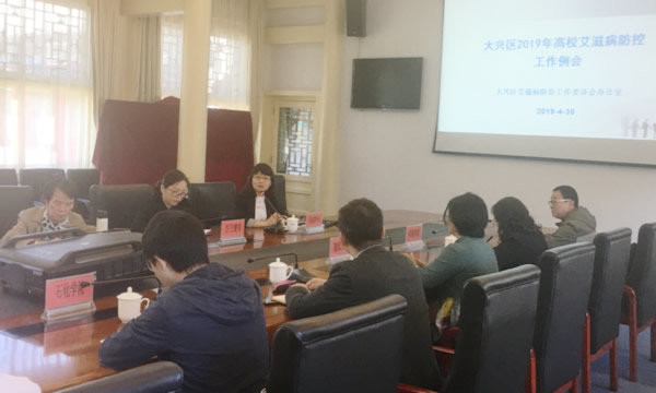 为进一步加强大兴区高校防艾体系建设,提高各高校艾滋病防治工作能力,明确工作目标,深入落实多部门联防联控的工作机制,根据《2019年北京市艾滋病防治工作要点》、《北京市高等学校艾滋病防控工作方案(试行)》要求,2019年4月30日,大兴区防艾办在北京建筑大学大兴校区组织召开了“2019年大兴区高校艾滋病防治工作第一次例会”。区卫健委、区疾控中心及辖区9所高校负责艾滋病防控工作的相关负责人及业务骨干共16人参加了会议。