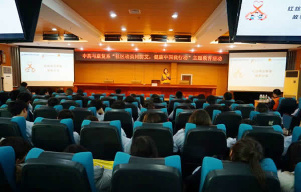 活动邀请到北京地坛医院红丝带之家郭贺冰和于艳平两位老师。首先郭贺冰老师为同学们介绍了艾滋病的传播途径、病程进展、国家政策等知识,重点强调了一般生活接触,如拥抱、握手、游泳等不会传播艾滋病,希望学生们以平常心对待艾滋病患者,要关心、爱护他们,真正做到零歧视,共同营造和谐的社会氛围。于艳平老师根据工作经验给同学们分享了多个真实案例,警示大家要自重自爱,加强自我保护意识,远离不安全性行为,远离毒品,远离艾滋。