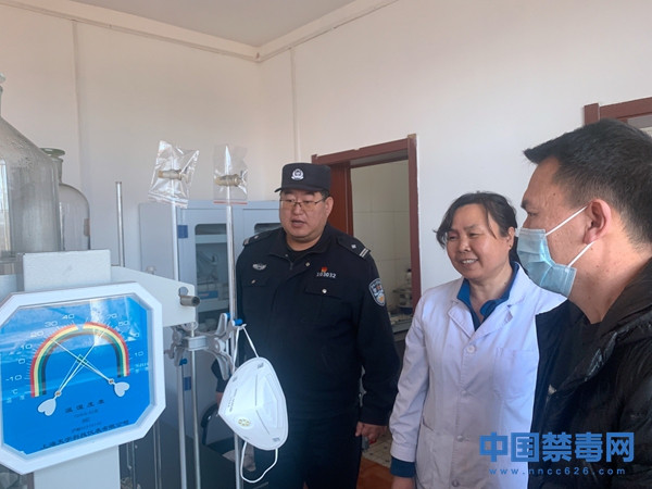 图为禁毒民警实地查看易制毒化学品使用情况。中国禁毒网发