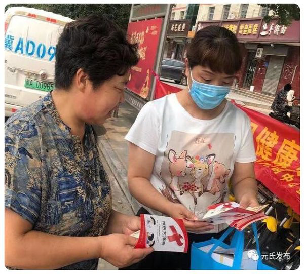 活动现场悬挂宣传条幅,采取“一对一”或“一对多”向前来参加活动的群众讲解:如何预防艾滋病、艾滋病有哪些危害、艾滋病的传播途经有哪些以及如何正确对待艾滋病患者。