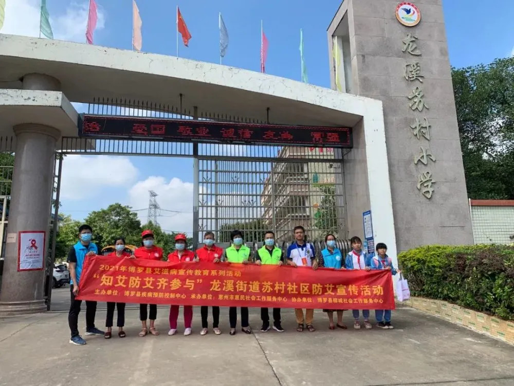 为进一步宣传普及艾滋病防治知识,提高群众的防艾意识,了解艾滋病的传播途径,正确理解和对待艾滋病。由博罗县疾病预防控制中心主办,惠州市惠民社会工作服务中心承办、博罗县榕城社会工作服务中心驻苏村社区“三社联动”社工站协办的2021年博罗县艾滋病宣传教育系列活动——“知艾防艾齐参与”龙溪街道苏村社区防艾宣传活动在博罗县龙溪街道苏村社区市场和苏村小学举行。