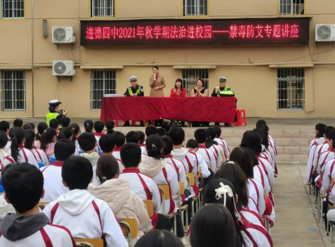 为深入推进学校青少年法治宣传教育工作,提升中小学生法治意识和自我防护能力,2021年11月9日下午,柳江区司法局和柳江区交警大队到我校举办法治进校园禁毒防艾专题讲座,共计800余名师生参加此次活动。