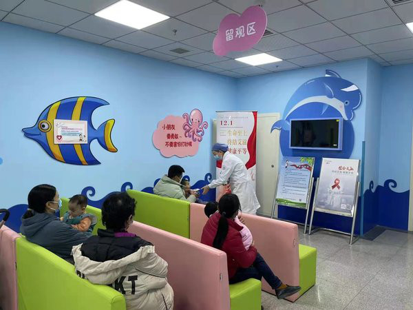 台湖社区服务中心在免疫接种候诊和留观大厅对来进行免疫接种的家长们进行宣传。发放宣传材料,采取案例讲解、答惑解疑、发放防艾宣传单等形式,热心宣传,耐心讲解,结合什么是艾滋病、艾滋病的传播途径、如何有效预防艾滋病等知识,并向群众宣讲艾滋病防护知识和国家的相关法律法规和政策,教育他们树立社会责任意识,养成良好卫生的生活习惯,自觉防止艾滋病传染。