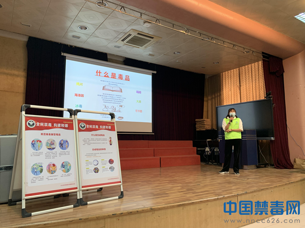 图为禁毒讲师运用PPT多媒体课件向学生普及禁毒相关知识。中国禁毒网发
