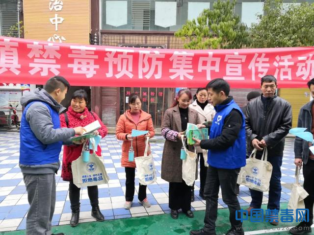 图为工作人员向群众发放禁毒宣传资料。中国禁毒网发