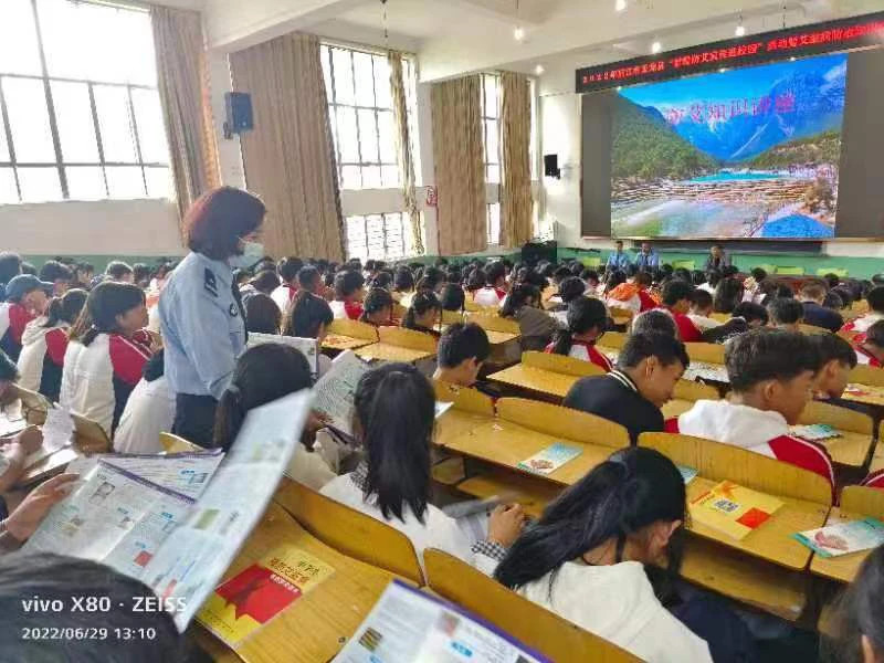 6月29日我院刑事检察部门干警同县公安局禁毒大队民警、县疾控中心工作人员到玉龙县田家炳民族中学开展“禁毒防艾宣传进校园”活动,我院干警结合办案实际,就常见毒品种类、毒品危害、涉毒犯罪及涉毒典型案例等进行了认真讲解,呼吁青少年学生要“珍爱生命,远离毒品”。