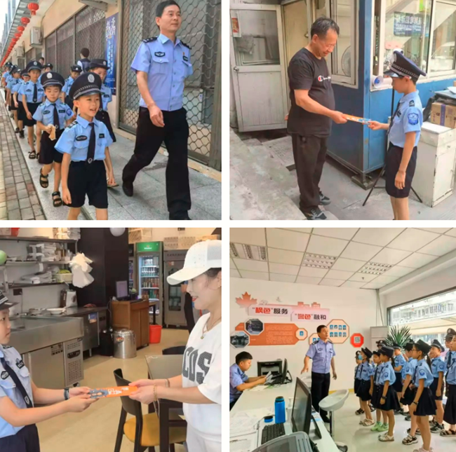 曹警官带着禁毒“小警察”们走街串巷,向居民宣传分发禁毒宣传手册,宣传禁毒相关知识,在炎炎烈日下,“小警察”们亲身体验一把社区民警的日常工作,感受到警察工作的辛苦。