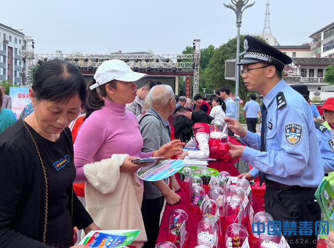 图为禁毒工作人员向群众展示毒品仿真模型。中国禁毒网发