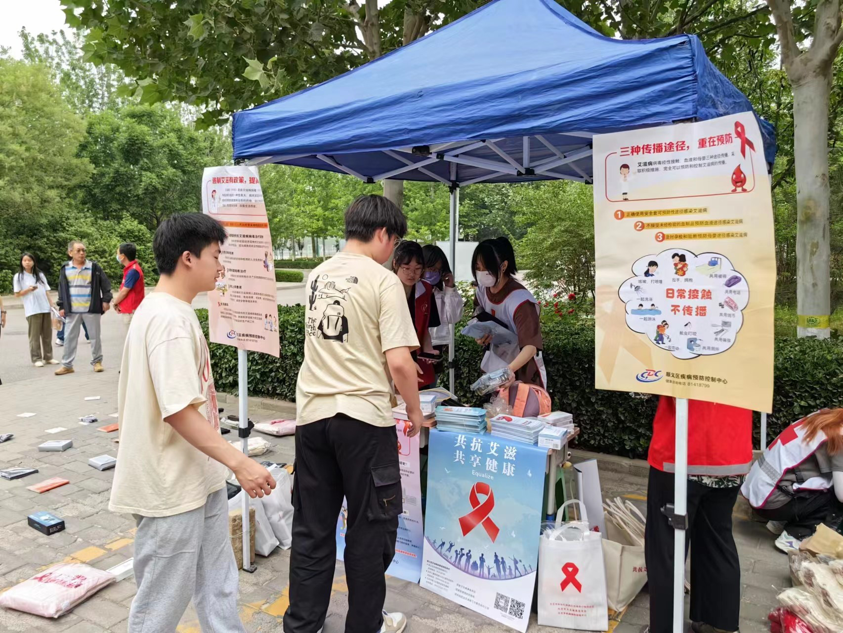为进一步提高大学生人群艾滋病防控知识知晓率,落实卫生部门对高校的技术指导工作要求,2023年5月31日,北京市顺义区疾控中心联合高校“青春红丝带”社团开展了艾滋病防控宣传“进校园”活动。