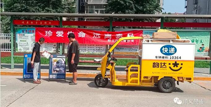 天竺镇禁毒工作小组组织禁毒社工在天竺家园社区开展寄递行业禁毒宣传活动。禁毒社工走访快递员,向快递从业人员及收取快递的居民群众派发禁毒宣传资料,普及禁毒知识和相关法律法规,宣讲禁毒理念,弘扬禁毒正能量,引导大家积极参与禁毒斗争,发现和举报涉毒违法犯罪行为,使快递从业人员及居民充分了解了毒品的危害,增强了对禁毒工作重要性的认识,筑牢了寄递渠道禁毒防线。