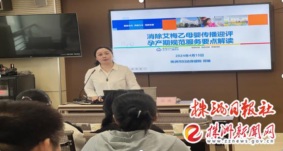 本次培训特邀了株洲市妇幼保健院副主任医师邓维授课,重点强调了今年迎接省级消除艾梅乙母婴传播的工作要求,迎评工作重点。针对艾梅乙感染孕产妇病历书写及服务流程、孕产妇规范咨询及随访、儿童的规范化管理和实验室质量管理进行了详细讲解。
