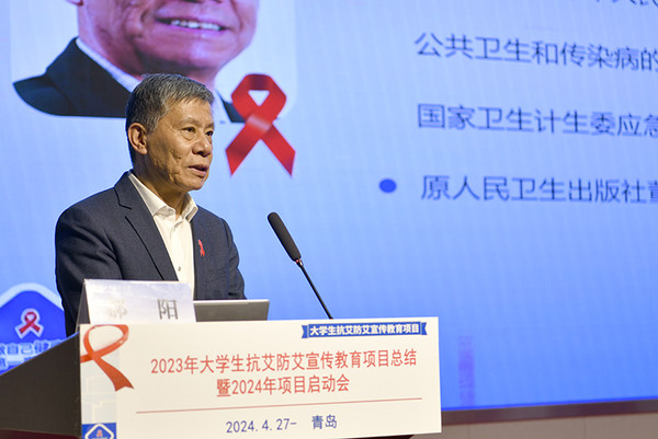 4月27日,2023年大学生抗艾防艾宣传教育项目总结暨2024年项目启动会在我校举办。中国性病艾滋病防治协会会长郝阳、中国疾控中心艾防中心副主任吕繁、山东科技大学副校长诸葛福民等出席会议,启动2024年大学生抗艾防艾宣传教育项目并为我校学生志愿者颁发学生艾滋病防治宣传志愿者聘书。中国性病艾滋病防治协会副会长兼秘书长王新伦主持会议。