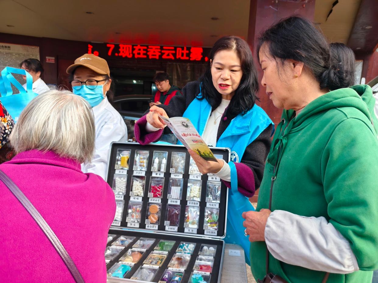 活动现场,大量群众被仿真毒品展示台吸引而驻足。工作人员围绕新型毒品隐蔽性强、危害大的特点,明确告知大家毒品成瘾性极高且极难戒断,它不仅会破坏生理机能、诱发精神障碍,还会因共用器具等方式成为艾滋病感染的高危人群。与此同时,工作人员穿梭在人群中,给群众发放禁毒防艾宣传手册、健康指南等资料,针对女性和老年群体的防范特性进行精准科普,详细讲解自我保护的技巧,特别提醒大家要主动关注自身健康情况,定期参加相关检测,共同筑牢禁毒防艾的健康防护屏障。