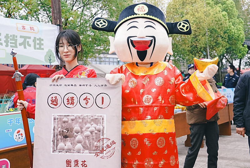 中国禁毒网讯 近日,浙江省海宁市各地“轧太平”千年民俗集市启幕。海宁市禁毒部门走入集市,创新形式让禁毒宣传贴近民心。
